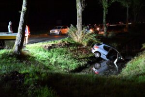 Grou – Op de A32 tussen Grou en Leeuwarden is woensdagavond een auto van de weg geraakt en in de sloot beland.