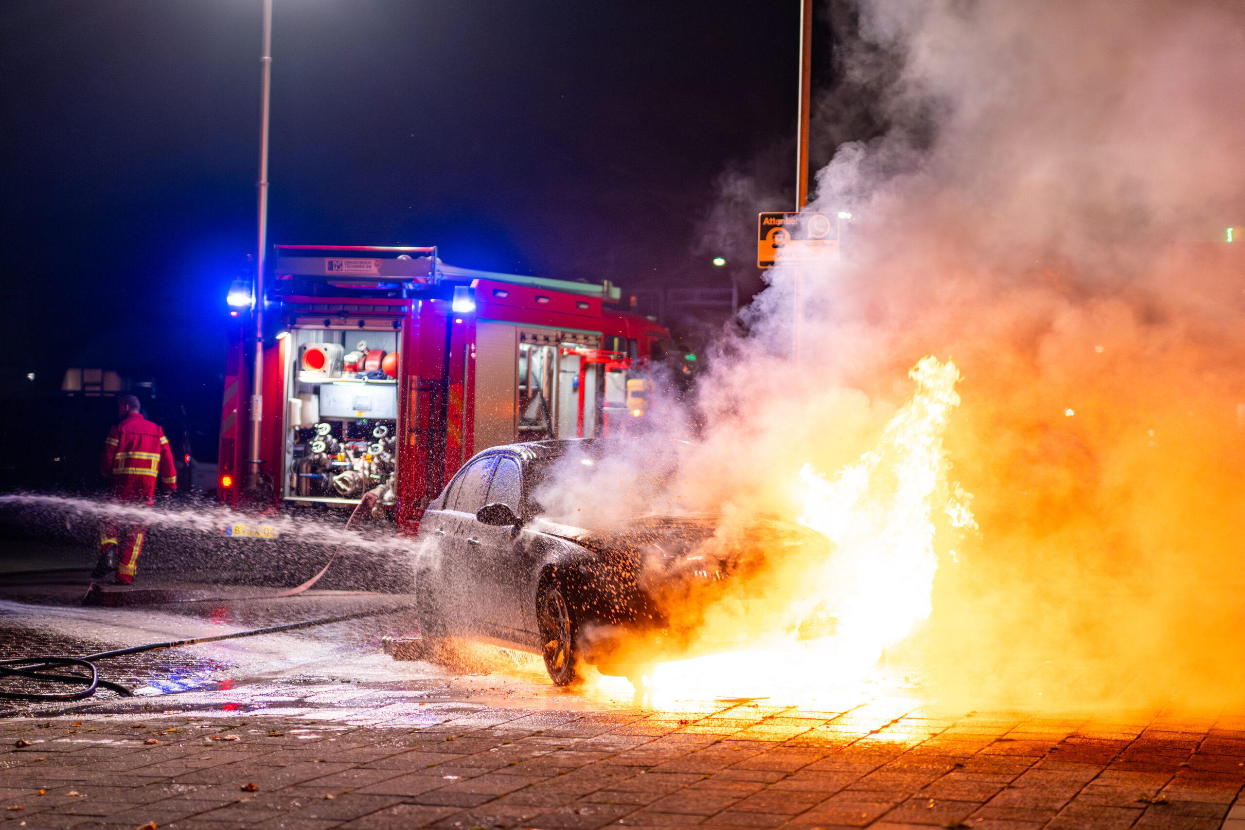 De brandweer van Hoogezand kwam ter plaatse en begon direct met blussen. Toen de brand vrijwel onder controle was, vatte het voertuig opnieuw vlam. Daarbij ontstond ook brand op het voetpad.