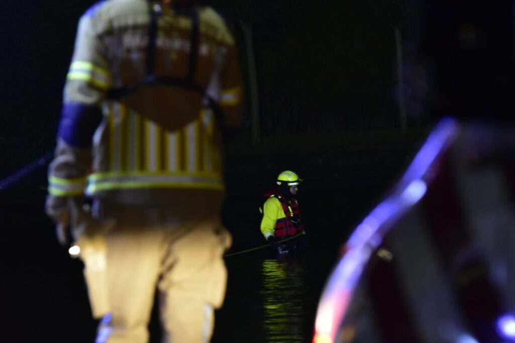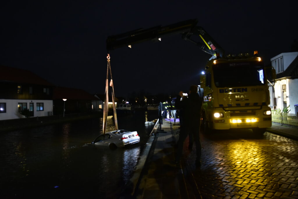 Sneek – Aan de Woudvaartkade in Sneek is zondagavond een auto te water geraakt met twee inzittenden.