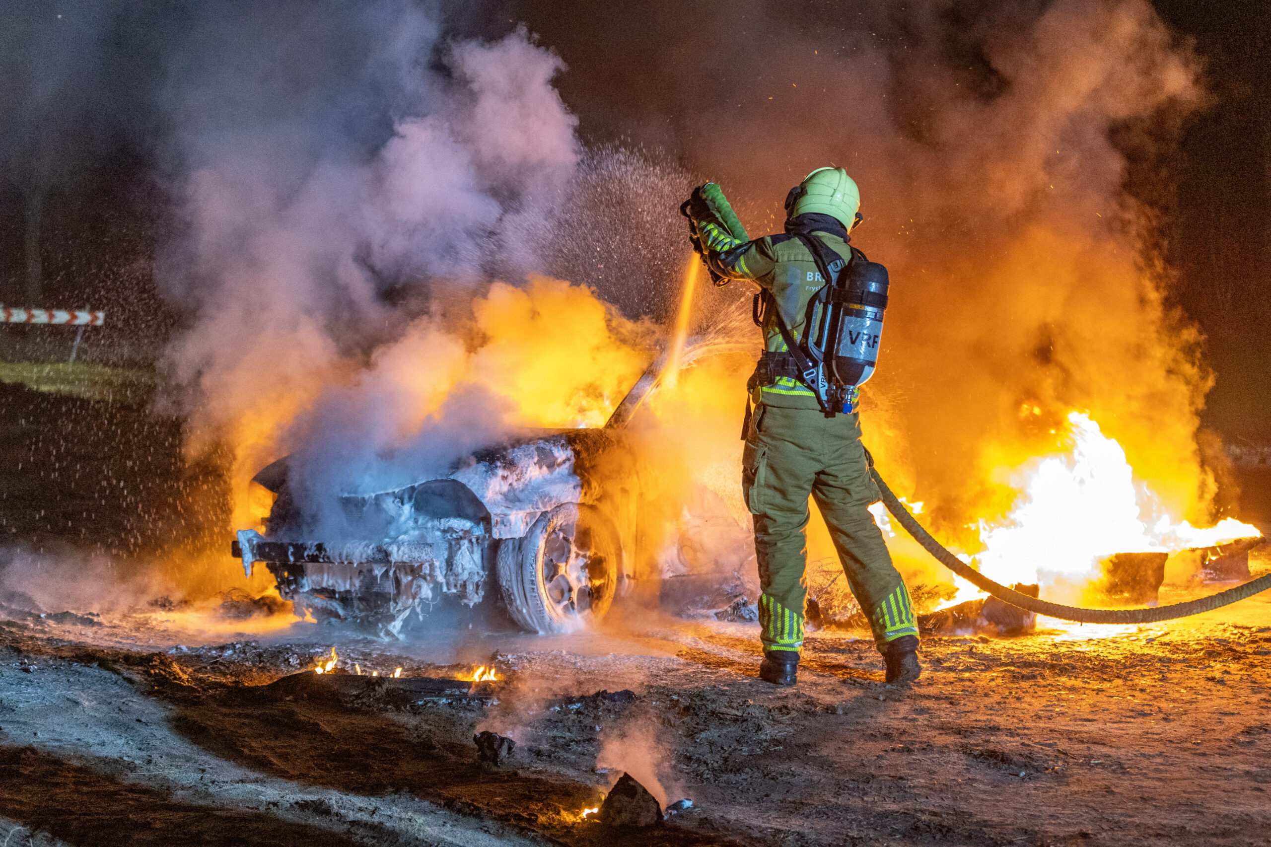 Nijeholtpade – Een auto is oudejaarsavond volledig verloren gegaan door een felle brand langs de N351-Stellingenweg.