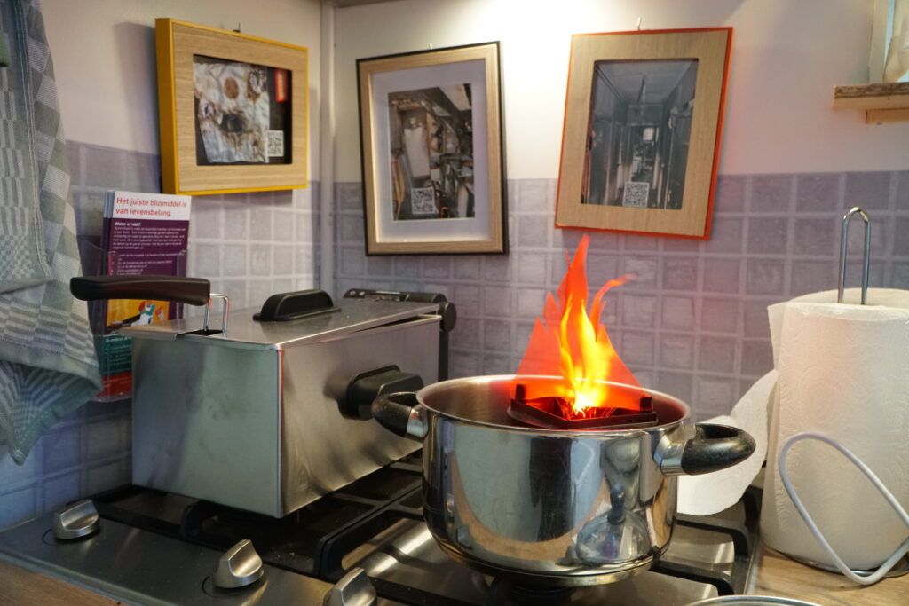 De brandweer pop-up is ingericht als een echte woning, compleet met keuken, woonkamer, slaapkamer en wasruimte met meterkast. Bezoekers kunnen er allerlei situaties bekijken die in het dagelijks leven brandgevaar kunnen opleveren.