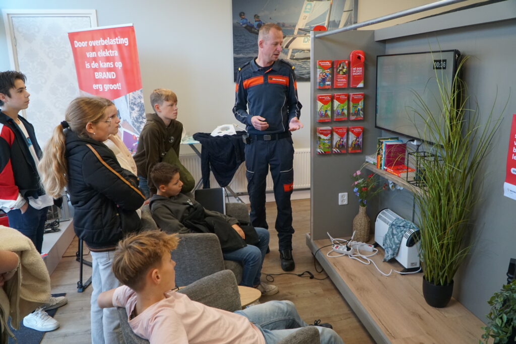 Leerlingen van het Marne College mochten als eersten een kijkje nemen. “Het is mooi om te zien hoe geïnteresseerd ze zijn, vooral als het gaat om iets herkenbaars als de mobiele telefoon en het laadsnoertje,” vertelt brandweerman Richard Bouma. “It idee is om minsken op in tagonklike wize mear te toanen en te fertellen oer brânfeiligens, en ek tips te jaan om it gedrach sa nedich te ferbetterjen.”