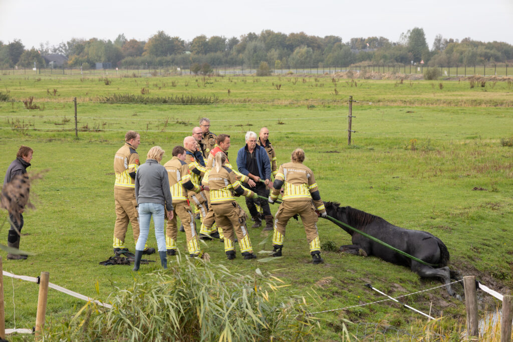 De melding kwam rond kwart over tien binnen. Ter plaatse troffen de hulpdiensten het dier aan in het water. Met behulp van touwen en in samenwerking met omstanders wist de brandweer het paard weer op het droge te krijgen.