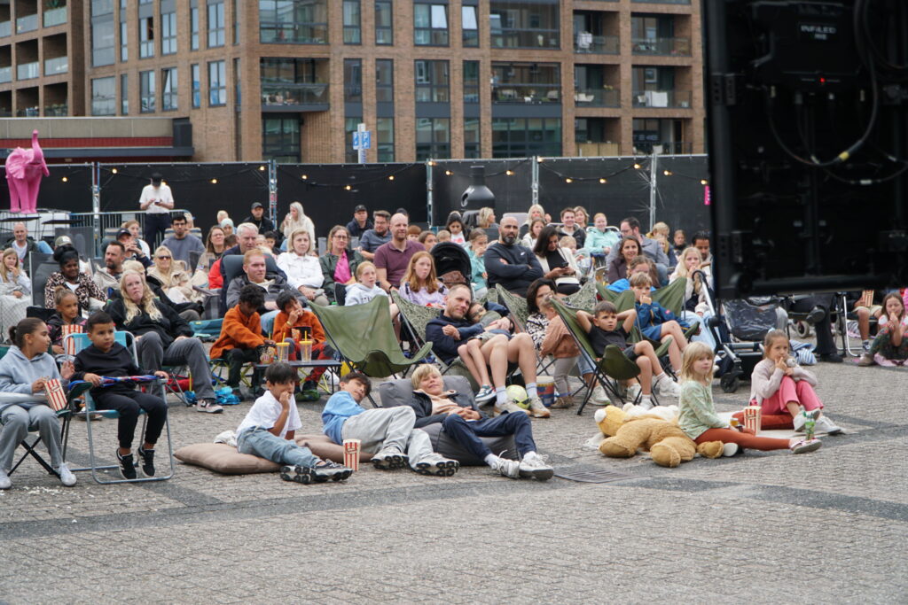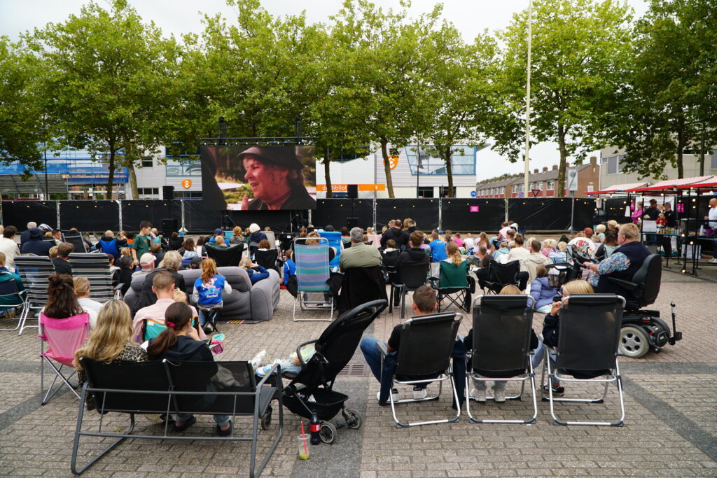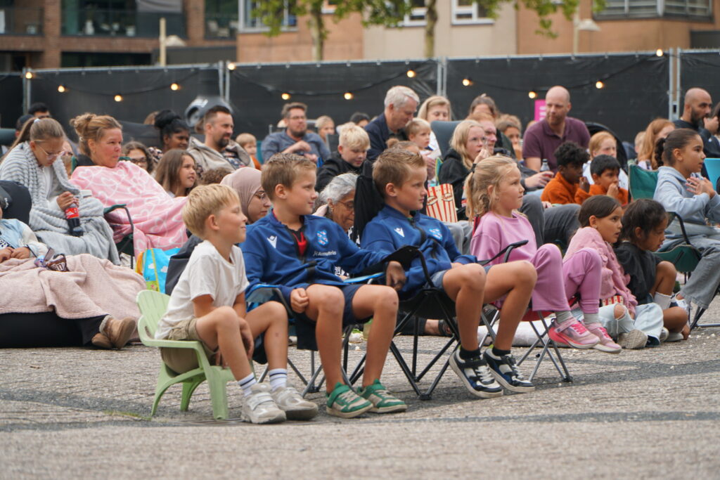 Bezoekers genoten op matrassen, opblaasbare banken en kleurrijke kleden van de eerste film van de avond: De Schippers van de Kameleon. “De sfeer is goed,” zegt Robin van der Werf, die helpt bij de organisatie van het evenement. “Iedereen zit gezellig bij elkaar, het voelt echt als een zomeravond uit.” De buitenbioscoop is een voorproefje van wat komen gaat. De echte bioscoop opent naar verwachting in oktober haar deuren.
