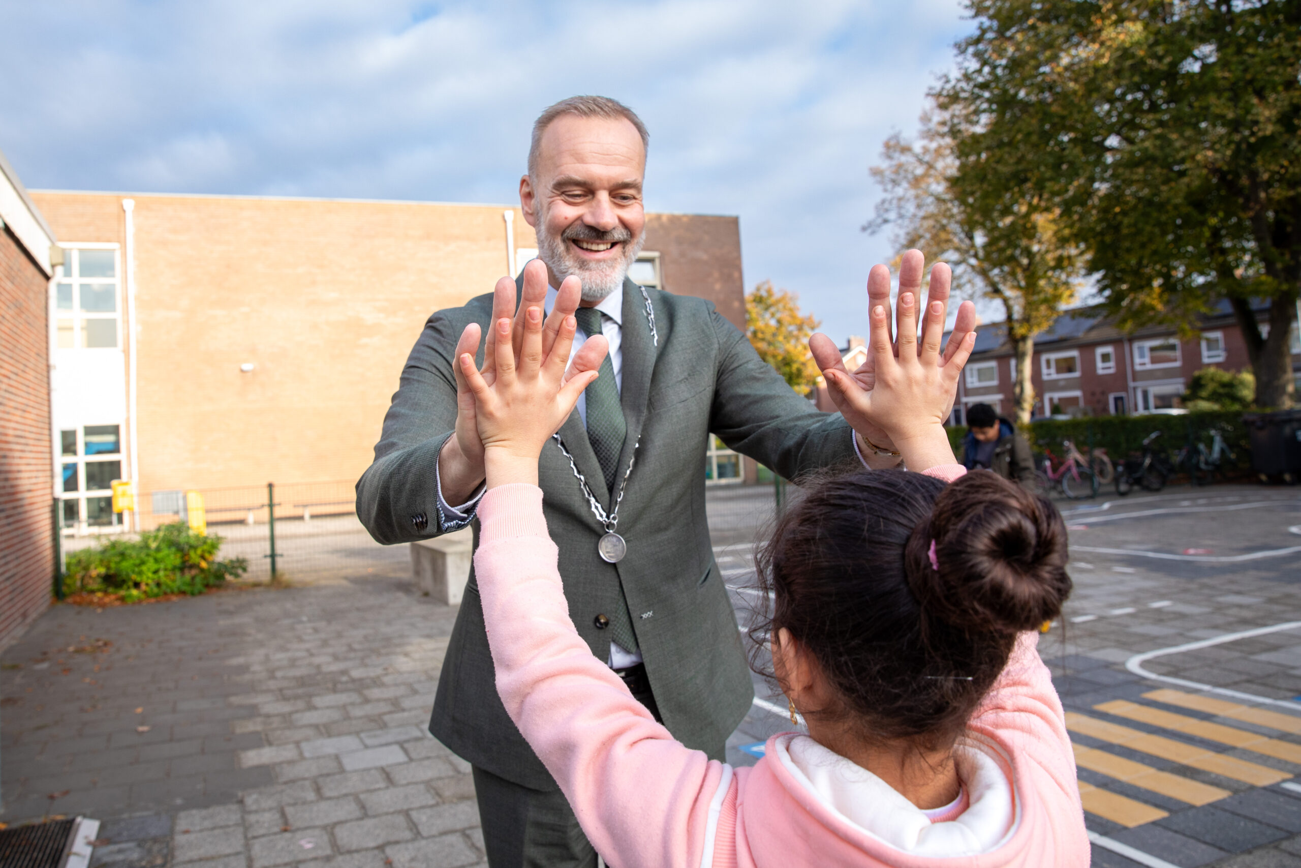 “Wij zijn ontzettend trots en vereerd dat de burgemeester bij ons op bezoek is,” vertelt de teamleider Stef Buurmeijer. “Onze leerlingen leren wat het betekent om onderdeel te zijn van een gemeenschap, en hoe belangrijk respect, gezondheid en samenwerking daarbij is.” Naast burgerschap is er op de school ook veel aandacht voor traumasensitief onderwijs en ouderbetrokkenheid. Ouders lezen regelmatig in hun eigen moedertaal voor in de klas en worden drie keer per jaar uitgenodigd voor oudergesprekken.