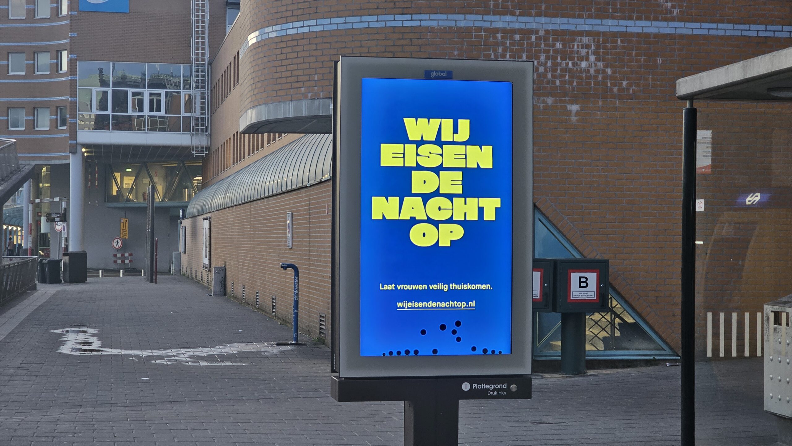 In heel Nederland zijn reclameborden geplaatst met de tekst ‘Wij eisen de nacht op, laat vrouwen veilig thuiskomen’. Met deze actie wordt aandacht gevraagd voor geweld tegen vrouwen. Ook bij het Hoofdstation in Groningen zijn deze borden inmiddels verschenen.