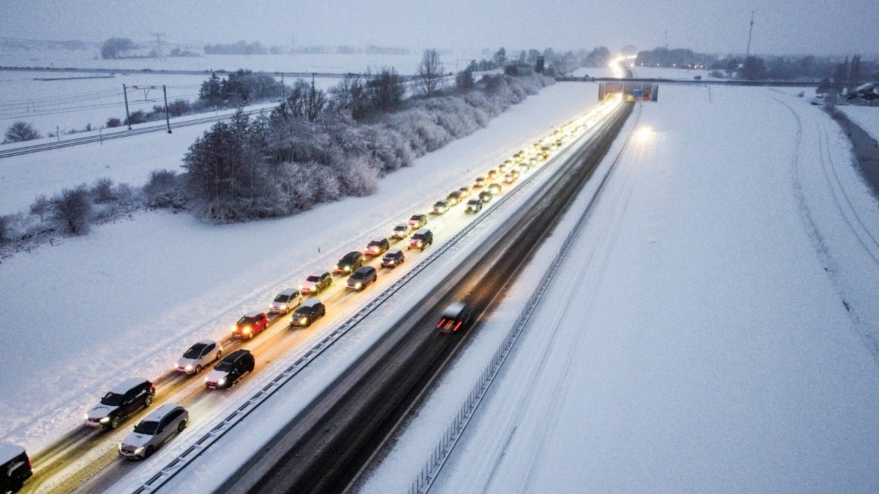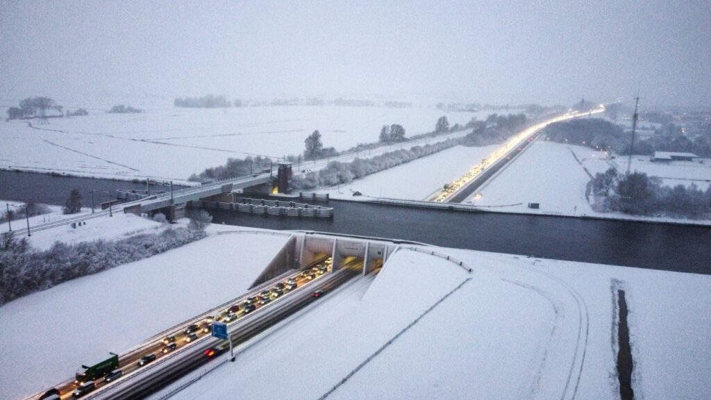 Doordat het verkeer stil staat kan er niet geschoven en gestrooid worden wat er voor zorgt dat er alleen maar meer sneeuw op de snelweg komt te liggen.
