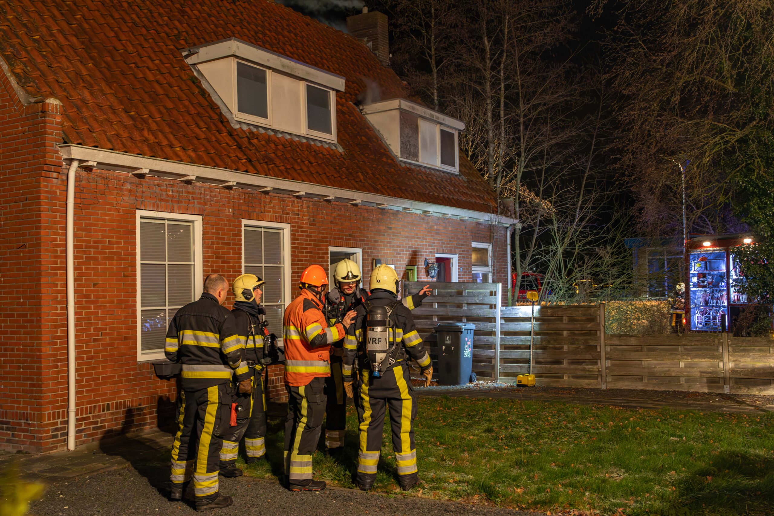 Bij aankomst van de eerste tankautospuit sloegen de vlammen al uit de twee-onder-een-kapwoning. De brandweer startte direct met bluswerkzaamheden en had de brand op de begane grond snel onder controle. De woning van de buren heeft rookschade opgelopen en is geventileerd.