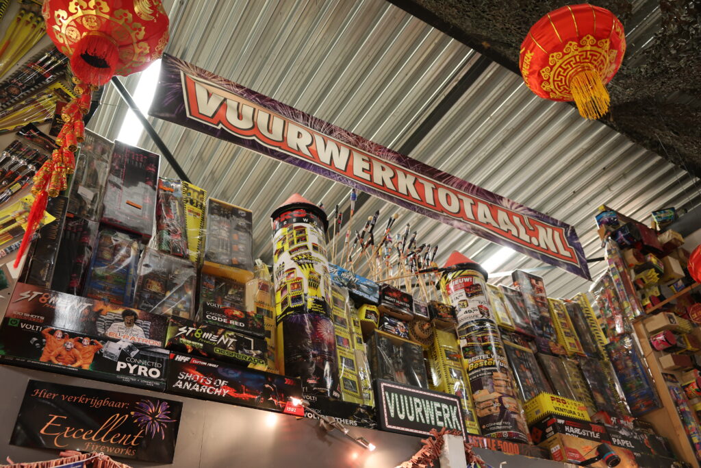 Ondernemer Fokke Rosier spreekt van ‘totale gekte’. Bij de kassa’s staan lange rijen en er wordt voor honderden euro’s aan vuurwerk verkocht.