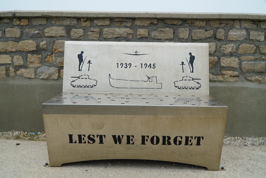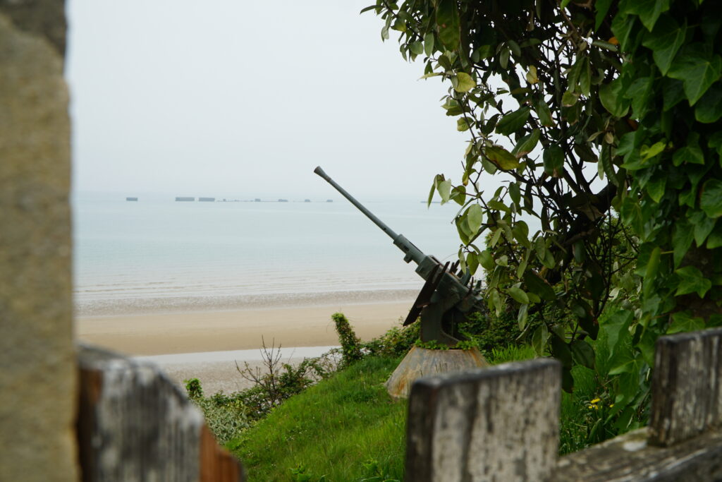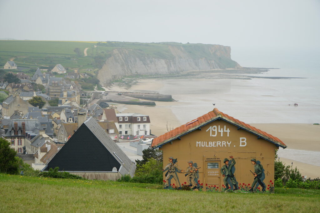 Arromanches, ingeklemd tussen groene velden en witte krijtrotsen, straalt tegenwoordig rust uit. Toch speelde zich hier op 6 juni 1944, D-day, een van de meest bloedige en bepalende momenten van de Tweede Wereldoorlog af. “We stonden op een uitkijkpunt met zicht op ‘Gold Beach’. Niemand zei iets. We waren allemaal onder de indruk van wat zich hier heeft afgespeeld,” vertelt Dulcy.
