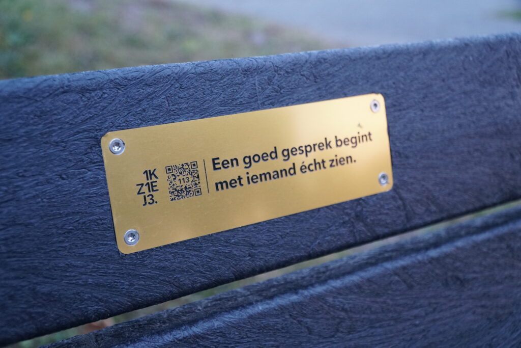 Het bankje staat bij het skatepark naast Sportstad. Op de rugleuning staat de indringende boodschap: “Een goed gesprek begint met iemand echt zien.” Het bankje is onderdeel van een landelijke campagne van 113 Zelfmoordpreventie, en moet een plek zijn waar ruimte is voor een open en écht gesprek – juist op momenten dat het moeilijk is.