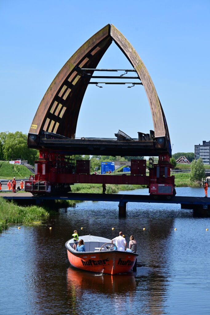 Sneek – De houten Krúsrakbrug in Sneek is zaterdagochtend met succes weggehaald en verplaatst.