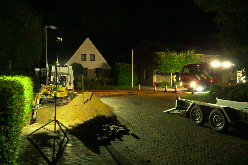 Mildam – Tijdens werkzaamheden aan een stroomstoring in De Wissel is in de nacht van zaterdag op zondag een gasleiding geraakt.