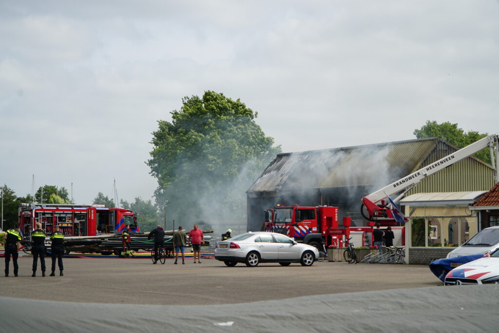 Het slachtoffer is per ambulance naar het ziekenhuis vervoerd, aldus de brandweer. De brand woedt in een loods op het terrein van de watersportvereniging in het dorp. In het gebouw stonden boten opgeslagen. De loods is inmiddels volledig in brand gevlogen. Twee blusploegen van de brandweer zijn ter plaatse om het vuur onder controle te krijgen.