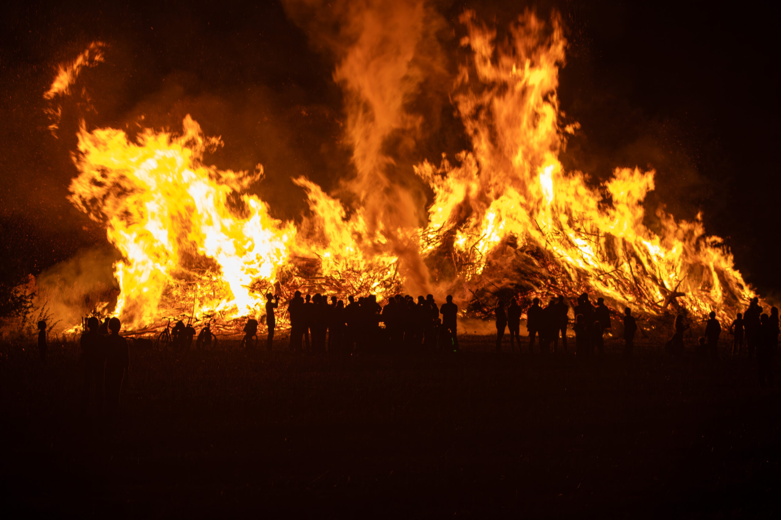 Handhavers zijn aanwezig om erop toe te zien dat alles netjes verloopt. Dankzij de gunstige weersomstandigheden kon het vuur dit keer zonder problemen doorgaan. Met het naverbranden van de paasbult komt er alsnog een symbolisch einde aan het paasvuurseizoen van 2025.