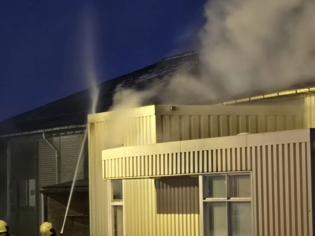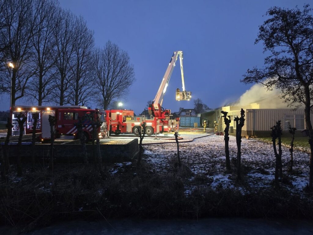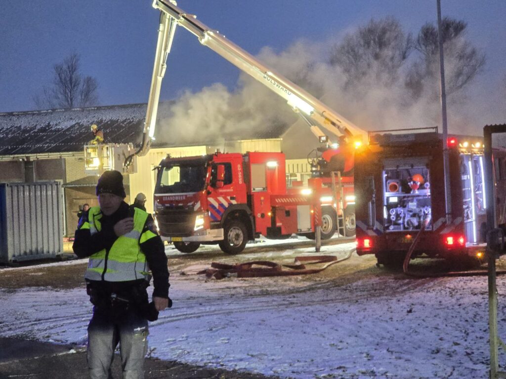 Tjerkwerd – In Tjerkwerd woedt op dit moment een uitslaande brand in een loods aan de Van Panhuysweg.