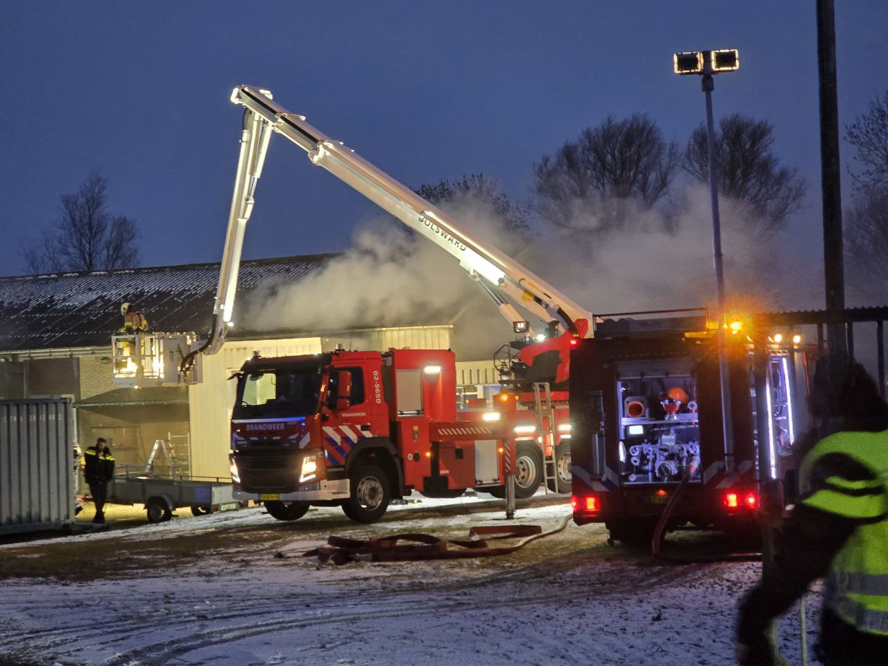 Tjerkwerd – In Tjerkwerd woedt op dit moment een uitslaande brand in een loods aan de Van Panhuysweg.