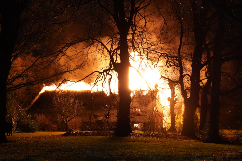 Assen – Maandagavond is er een grote brand uitgebroken bij een boerderij met een rietendak aan de Wittehaar in Assen.