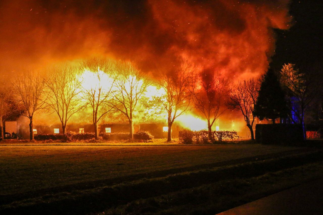 Noordbroek – Een grote brand heeft zondagavond de schuur van een woonboerderij volledig in de as gelegd.