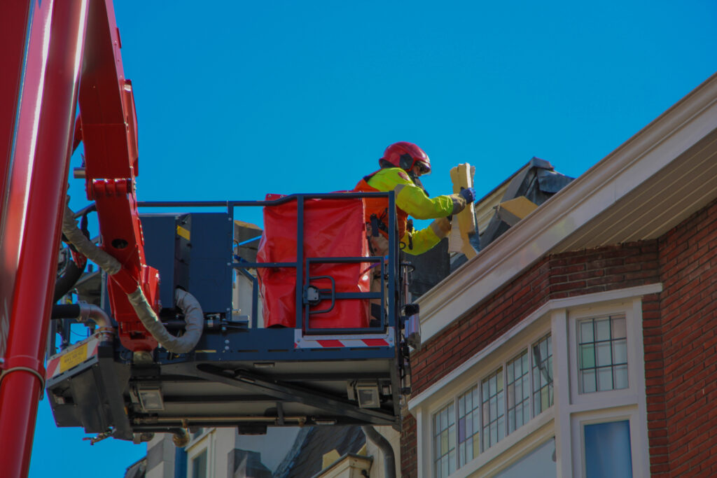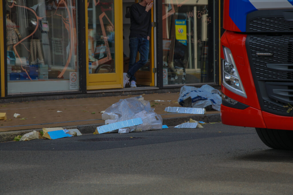 De problemen in de Herestraat ontstonden rond 16.30 uur. Van een dak zijn bouwmaterialen naar beneden gevallen. De straat ligt bezaaid met rommel. De hulpdiensten hebben vanwege de veiligheid de straat afgesloten.