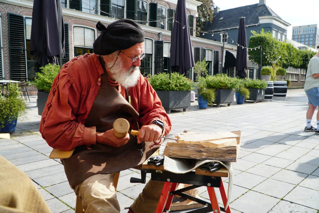 Terwijl het centrum in de middag steeds gezelliger druk werd, trok iets verderop de Turfstekermarkt een andere groep bezoekers aan. De marktkramen boden een breed scala aan producten, maar het waren vooral de oude ambachten die de aandacht trokken. Bezoekers konden live porselein schilderen, spinnen en weven, of het vakmanschap van houtsnijwerk bewonderen.