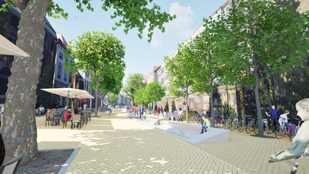 Er komen fietsroutes in twee richtingen, bomen, plantvakken met groen, zitplekken en ruimte voor terrassen. De gemeenteraad besluit in juli 2025 over het definitieve plan. Als alles verder volgens planning verloopt, starten de werkzaamheden begin 2026.