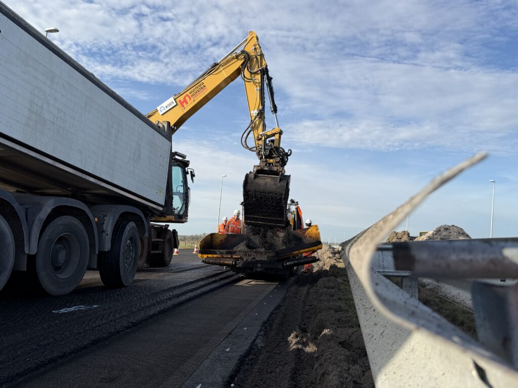 Tijdens de werkzaamheden wordt niet alleen het asfalt in beide richtingen vernieuwd, maar ook gewerkt aan een verbreding van de snelweg. “We maken de A7 breder en voorzien het wegdek van een nieuwe, stillere deklaag: ZOAB(zeer open asfaltbeton),” vertelt Wouter van Hekezen van KWS Infra. “Eerst frezen we de oude laag eraf, waarna we nieuw asfalt aanbrengen. Het mooie aan dit project is dat we het met een groot team doen – dag en nacht werken onze medewerkers om alles op tijd klaar te krijgen.”