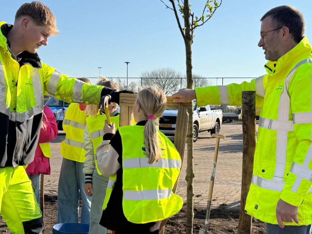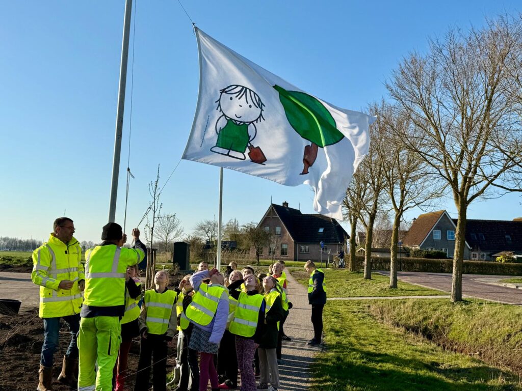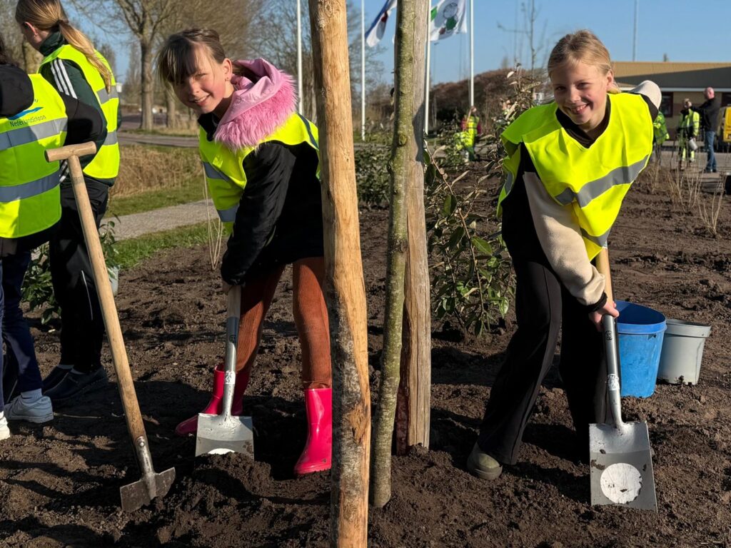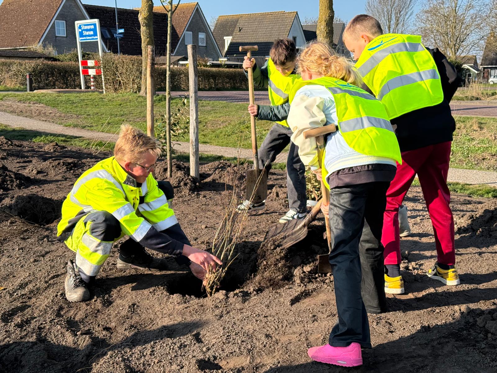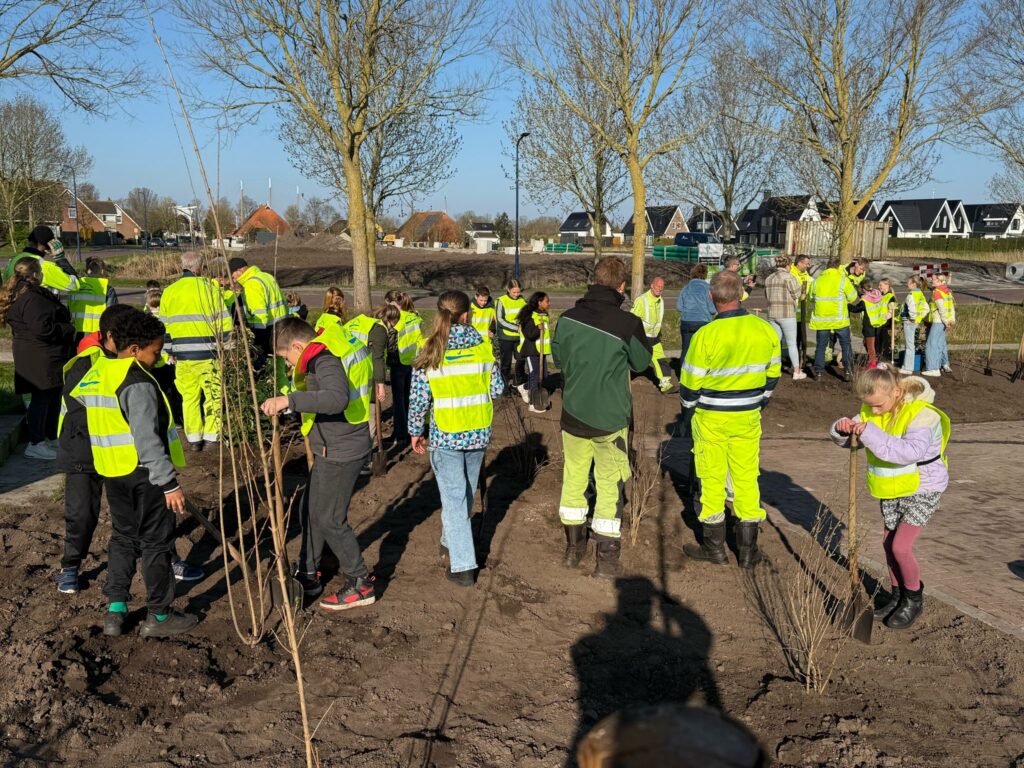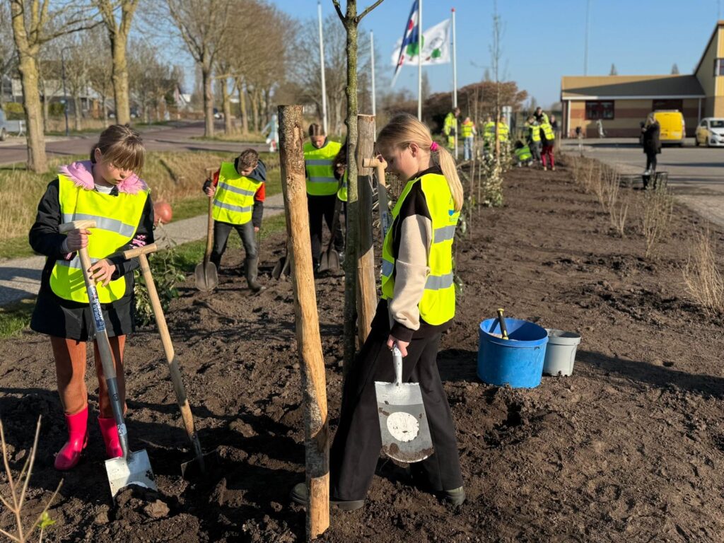 Leerlingen van CBS De Skutslús in Stavoren planten nieuwe bomen en struiken