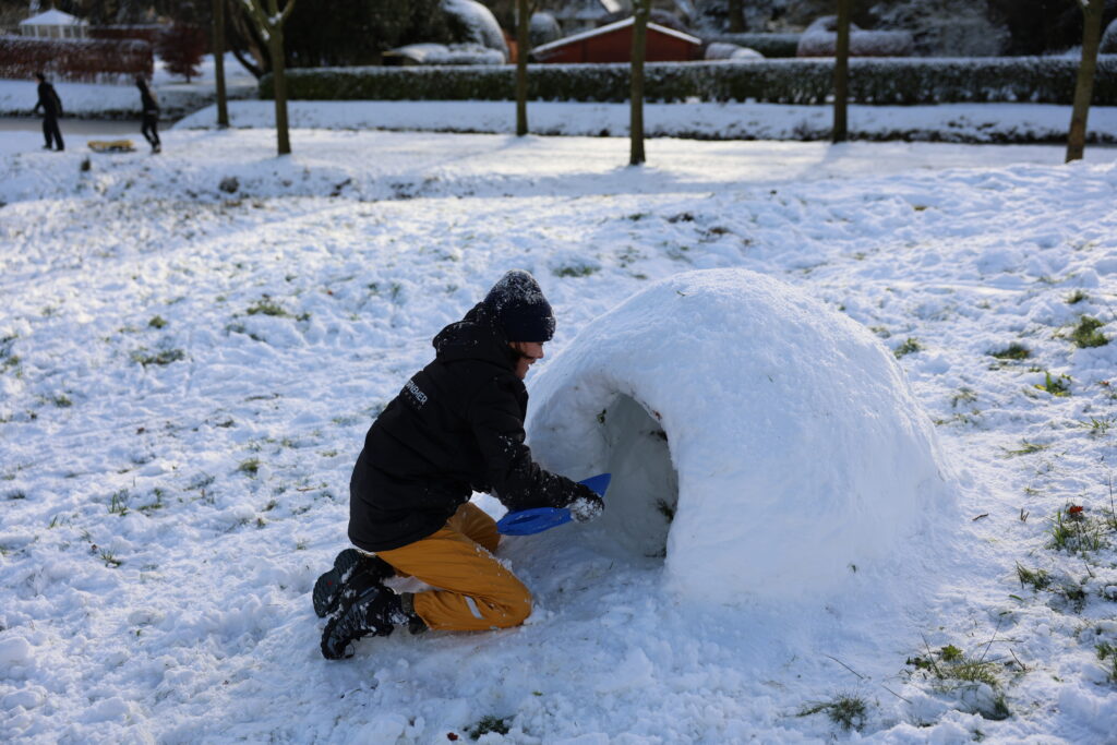 Naast sleeën worden er ook sneeuwpoppen en zelfs iglo’s gebouwd. In combinatie met de zon is het vandaag een prachtige winterdag.