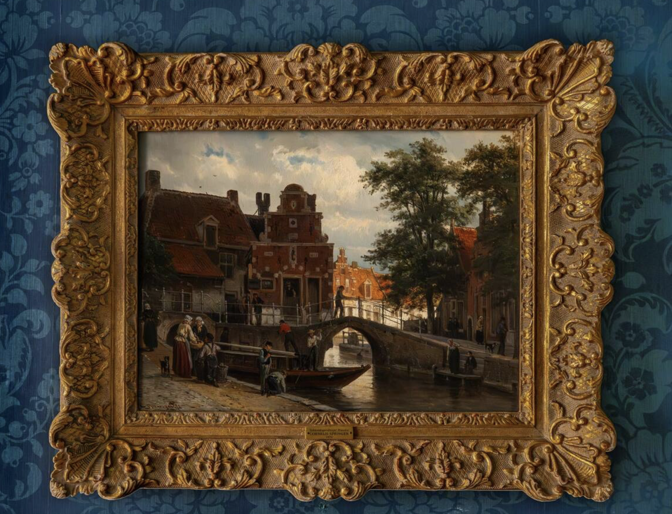 Het schilderij van Springer toont een levendig stadsgezicht van Franeker, met het herkenbare Zakkendragershuisje, in Franeker ook wel bekend als het Korendragershuisje. Het is een sfeervolle weergave van het leven langs de gracht. Het werk is niet alleen artistiek waardevol, maar ook van grote betekenis voor de geschiedenis van de stad. Het schilderij laat zien hoe weinig er eigenlijk veranderd is aan dit stukje Franeker. Sta je op de plek waar Springer ooit het Franeker tafereel op doek zette, dan zie je vrijwel hetzelfde plaatje.