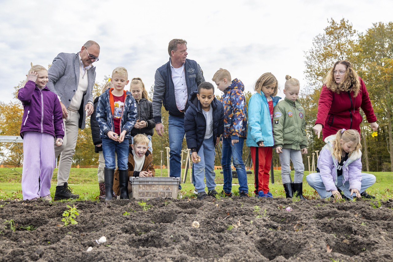 De afgelopen jaren is er samen met Plaatselijk Belang Zandpol, Vereniging Drentse Voedselbossen en betrokken inwoners gewerkt aan een groenplan ter versterking van de biodiversiteit rondom de speelplek aan de Stuifzandlaan. Wethouder Albert-Jan Jakobs was hierbij aanwezig om samen met leerlingen van basisschool ‘De Zwaluw’, de kinderraad, vrijwilligers en inwoners van Zandpol een aantal veldjes in te planten met bloembollen. Zo werd het nieuwe biodiversiteitspark op een feestelijke manier geopend.