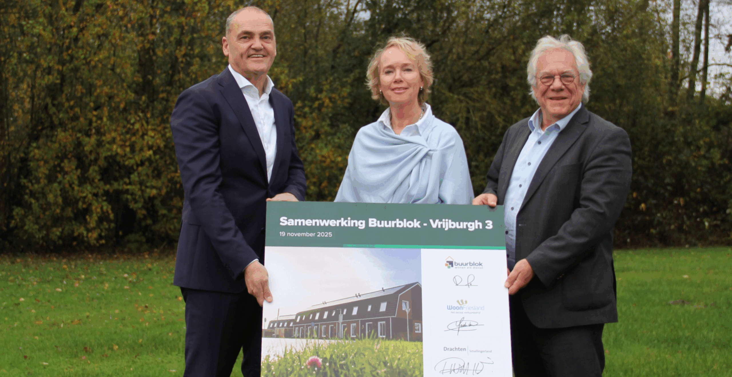 Op woensdag 19 november maakten wethouder Robin Hartogh Heys van de Lier, directeur-bestuurder Sigrid Hoekstra van het sociaal verhuurbedrijf WoonFriesland en Biense Dijkstra van Bouwgroep Dijkstra Draisma hun samenwerking officieel. Samen geven zij vorm aan een duurzame en sociale buurt in Vrijburgh 3. Wethouder Robin Hartogh Heys van de Lier: “We willen in Smallingerland woningen die goed zijn voor mens én milieu. Dit project helpt mensen aan een fijne, betaalbare woning en laat zien hoe duurzaam wonen eruit kan zien. Daar ben ik trots op.”