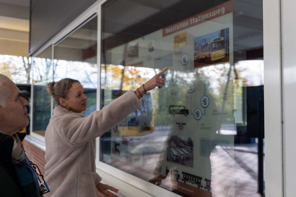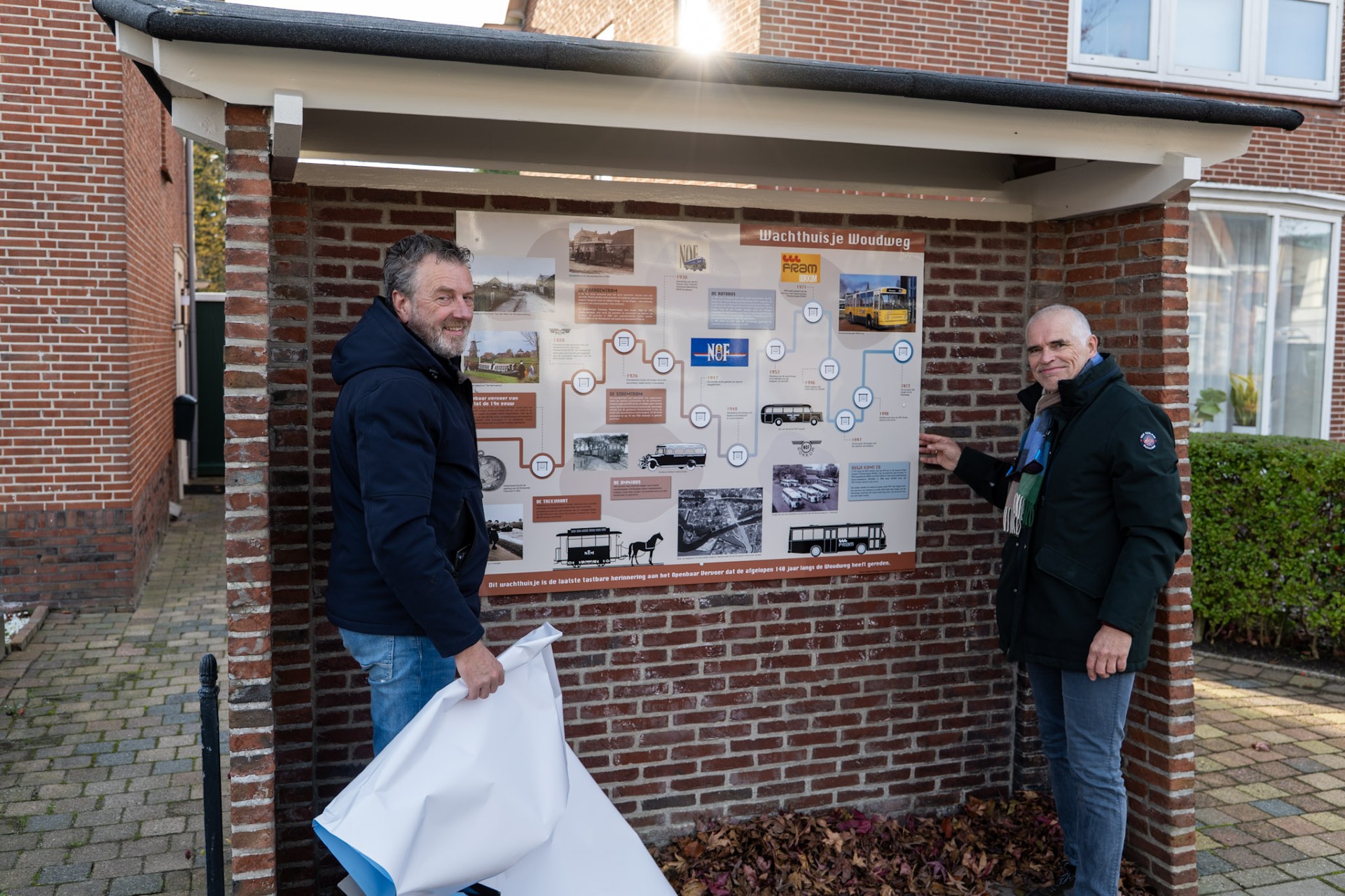 De panelen tonen met tekst en beeld hoe het vervoer in de regio zich ontwikkelde: van trekschuiten en paardentrams tot stoomtrams en uiteindelijk de bekende gele bussen van de FRAM. Beide panelen zijn ontworpen door LauwersReclame en voorzien van historische informatie samengesteld door Warner Banga.
