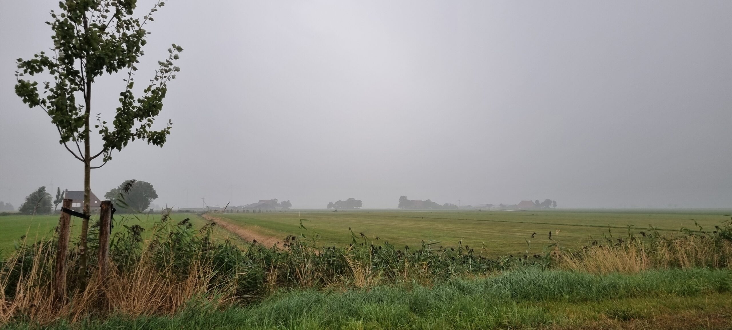 Vandaag is het grijs met van tijd tot tijd regen. Het wordt ongeveer 17 graden met een duidelijk merkbare zuidwestenwind.