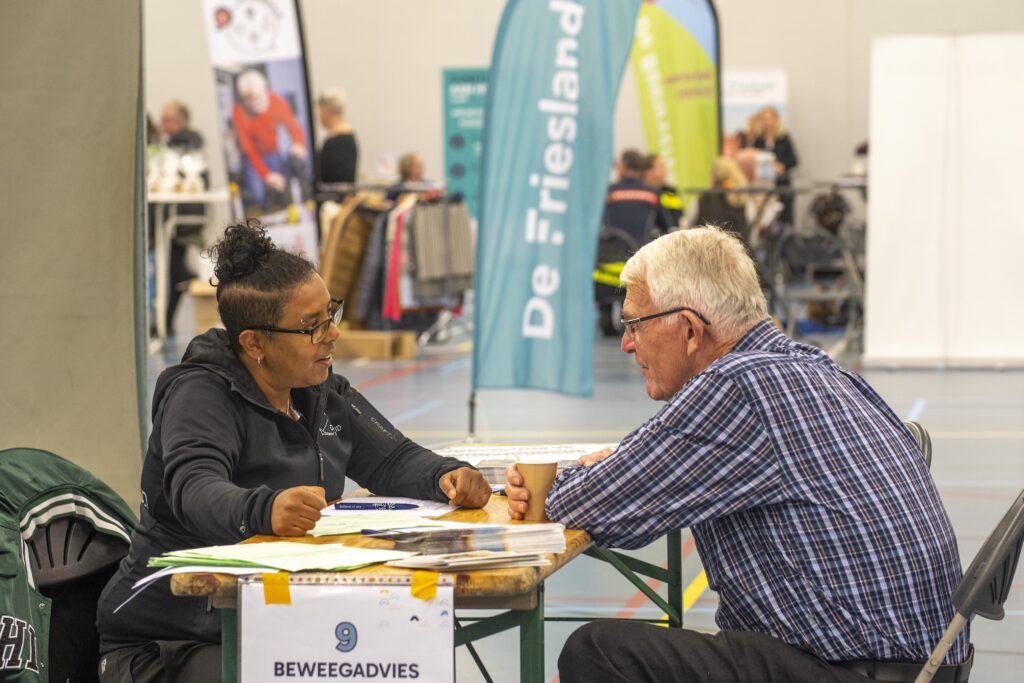 Informatie en persoonlijk advies In de Waddenhal waren informatiepleinen aanwezig waar bezoekers terecht konden voor advies en persoonlijke gesprekken. De verschillende onderwerpen waren bijvoorbeeld geldzaken, mobiliteit, gezondheid, wonen en zingeving. Zorgprofessionals, fysiotherapeuten en andere experts gaven uitleg en handige tips. Bezoekers leerden meer over lokale activiteiten en groepen voor bewegen en valpreventie.