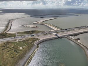 Het werk aan de buitenste dam in het IJsselmeer zit erop. Daarmee is de hele contour van de Vismigratierivier gereed.