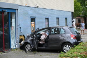 Leeuwarden – Zondagmiddag is een auto tegen een pand aan het Cambuurplein gebotst, wat leidde tot flinke schade aan zowel het gebouw als het voertuig.