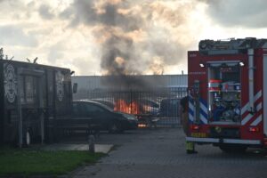 Leeuwarden – Dinsdagavond is op het terrein van een autohandel aan de Zwettestraat brand uitgebroken in een geparkeerde personenauto.