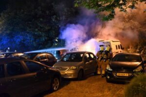 Leeuwarden – In de nacht van zaterdag op zondag zijn aan het Van Harinxmaplein in Leeuwarden drie geparkeerde voertuigen zwaar beschadigd geraakt door een felle brand.
