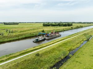Zoutkamp – Een elektrisch schip is sinds april bezig met het uitbaggeren van het Reitdiep, vanaf Groningen tot aan Zoutkamp.