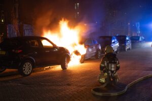 Geparkeerde auto aan de Noordvlietstraat in Leeuwarden uitgebrand