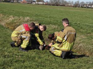 Heerenveen – Aan de Woudsterweg in Heerenveen is woensdagmiddag een ree vast komen te zitten in draad.