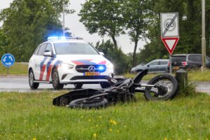 Koarnjum – Dinsdagochtend is een brommerrijder ten val gekomen bij een aanrijding met een auto op de kruising van de Bredyk en Skeltedyk.
