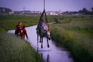 Groningen – De brandweer heeft woensdagavond een paard uit een sloot gered langs de Hoogeweg in Groningen.