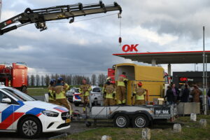 Leeuwarden – Een paard is zaterdagmiddag door de vloer van een trailer gezakt aan de Drachtsterweg in Leeuwarden.