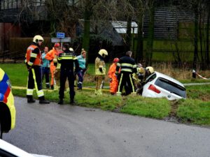 Sint Annaparochie – Een vrouw is zondagmorgen met een BMW langs de sloot tot stilstand gekomen.
