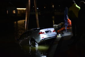 Sneek – Aan de Woudvaartkade in Sneek is zondagavond een auto te water geraakt met twee inzittenden.
