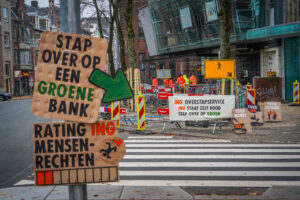 Groningen – Extinction Rebellion voert vandaag actie bij het ING kantoor aan het Hereplein. De milieuactivisten sporen met deze actie mensen, die bij ING bankieren, aan om van bank te wisselen.