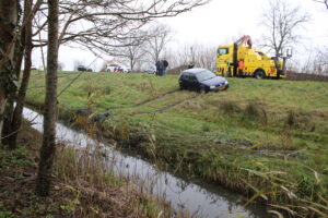 Workum – Zondagmiddag is naast de Sudergoawei bij Workum een auto te water geraakt.