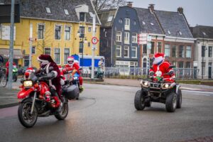 Groningen – Kerstmannen en -vrouwen reden vanochtend door de stad met motoren. Het is een landelijke actie om geld op te halen voor kinderen met kanker in het Prinsis Máxima Centrum in Utrecht.